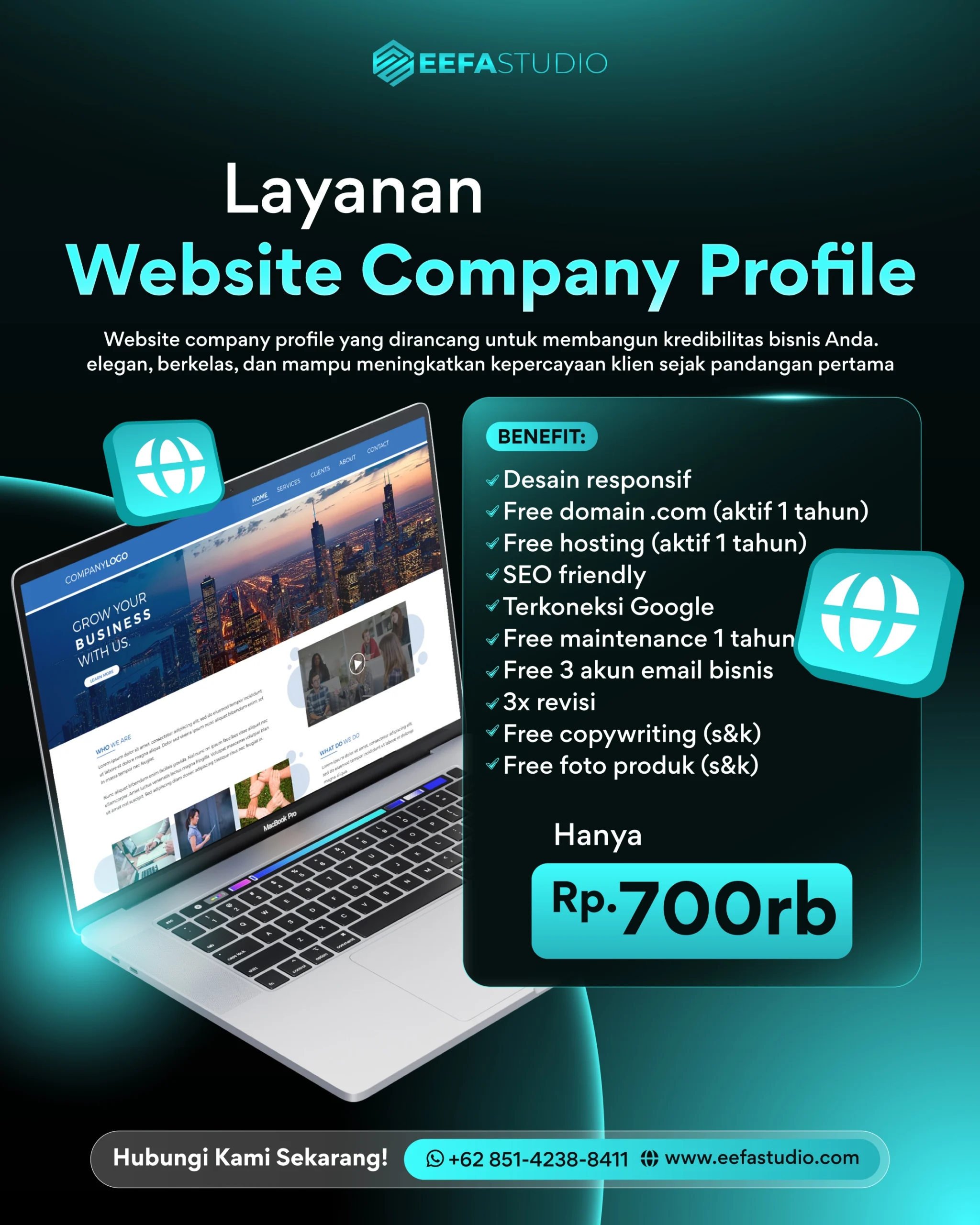 Website company profile yang dirancang untuk membangun kredibilitas bisnis Anda — elegan, berkelas, dan mampu meningkatkan kepercayaan klien sejak pandangan pertama.